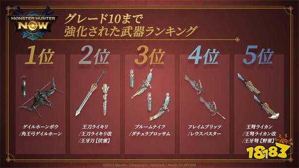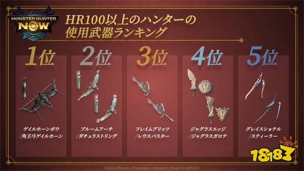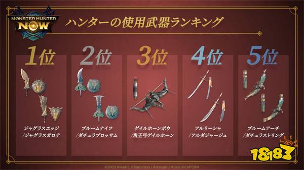 视频中揭示了过去一年中使用的武器排行榜和防具排行榜等玩家数据。 值得一提的是,使用武器排行榜第一名是单手剑的「凶豺龙棍棒」,防具排行榜第一名则是「雌火龙腕甲」,推测因具备实用的「连击」和「锁定」效果,受到许多手游玩家的喜爱。